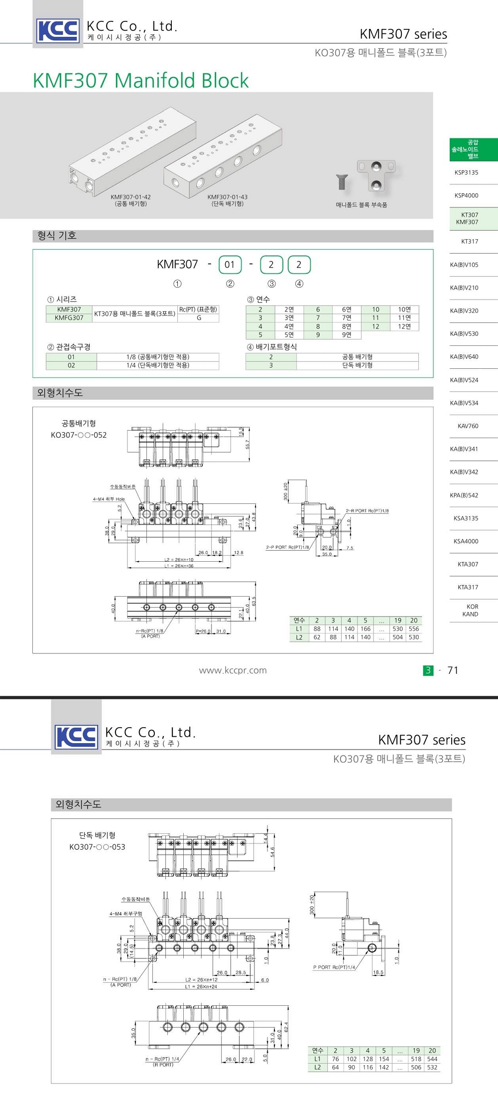 KO307 (매니폴드블록용) 밸브 시리즈 적용 매니폴드블럭입니다.