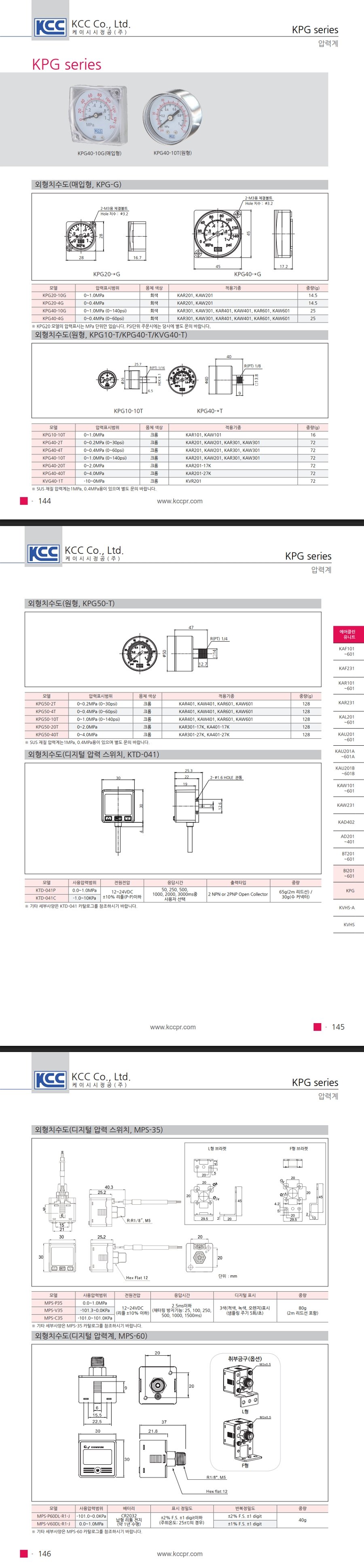| 체크포인트 | KPG10, KPG20 모델은 MPa 단위만 판매합니다. (PSI 별도 문의) STS (스테인리스스틸) 게이지 제공 가능합니다. (별도 문의) |