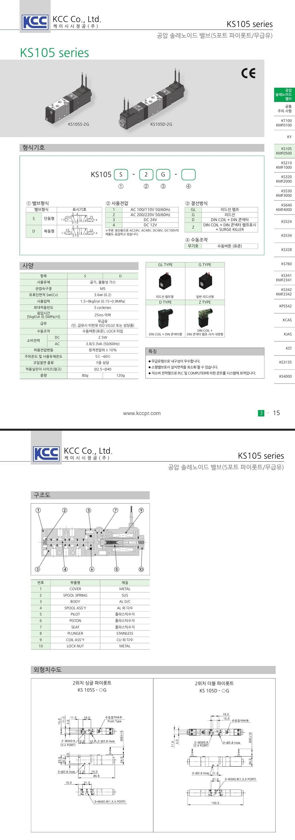 KS105 시리즈 포트구경 M5 5포트 파이롯트/무급유