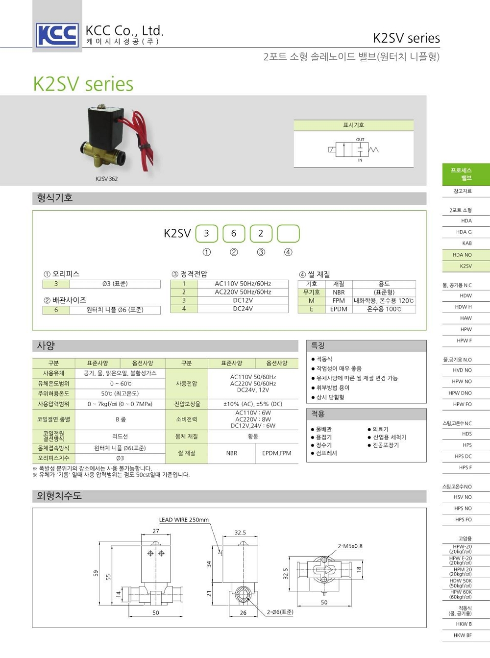 K2SV 시리즈 6파이 원터치니플형 소형 솔레노이드밸브