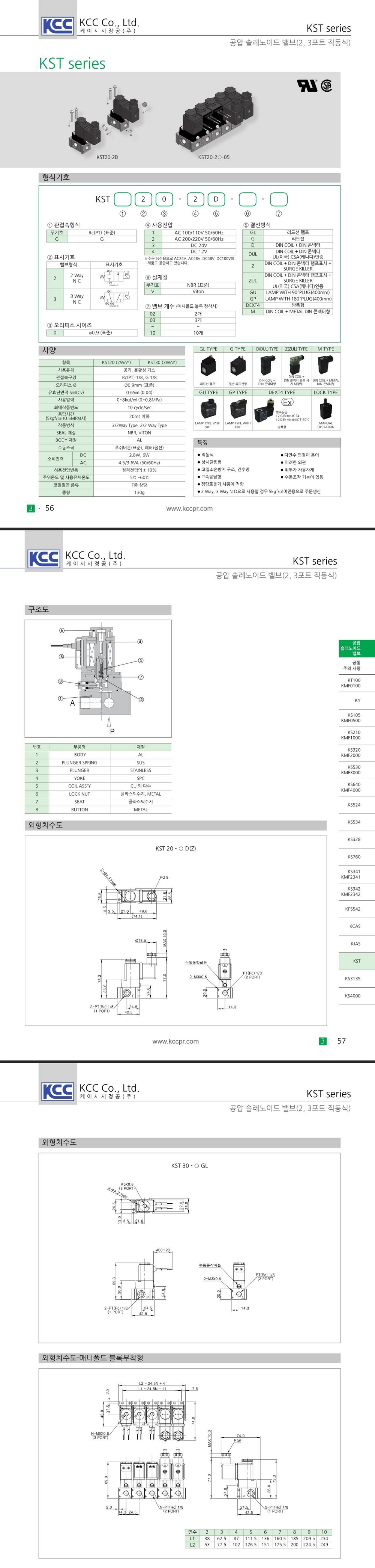 | 체크포인트 | KST 시리즈 관접속 Rc(PT) 1/8 공통입니다. 하기 별도 문의 주면 대응 가능합니다. -매니폴드 블록 장착(2~10연) 가능 -UL 인증 코일 적용 -플러그 커넥터, 메탈 커넥터 및 기타전압 등 |
