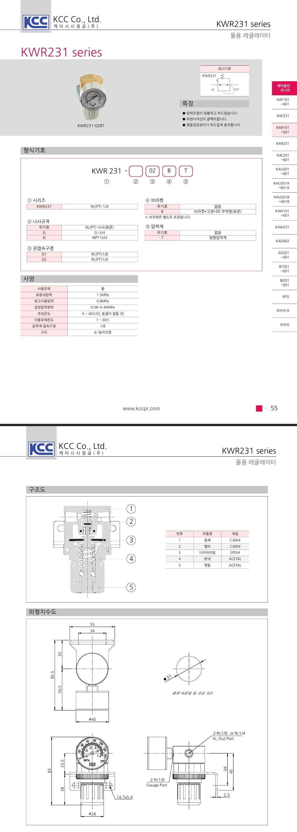 KWR 시리즈 Rc(PT) 1/4, 물 max 0.8 MPa