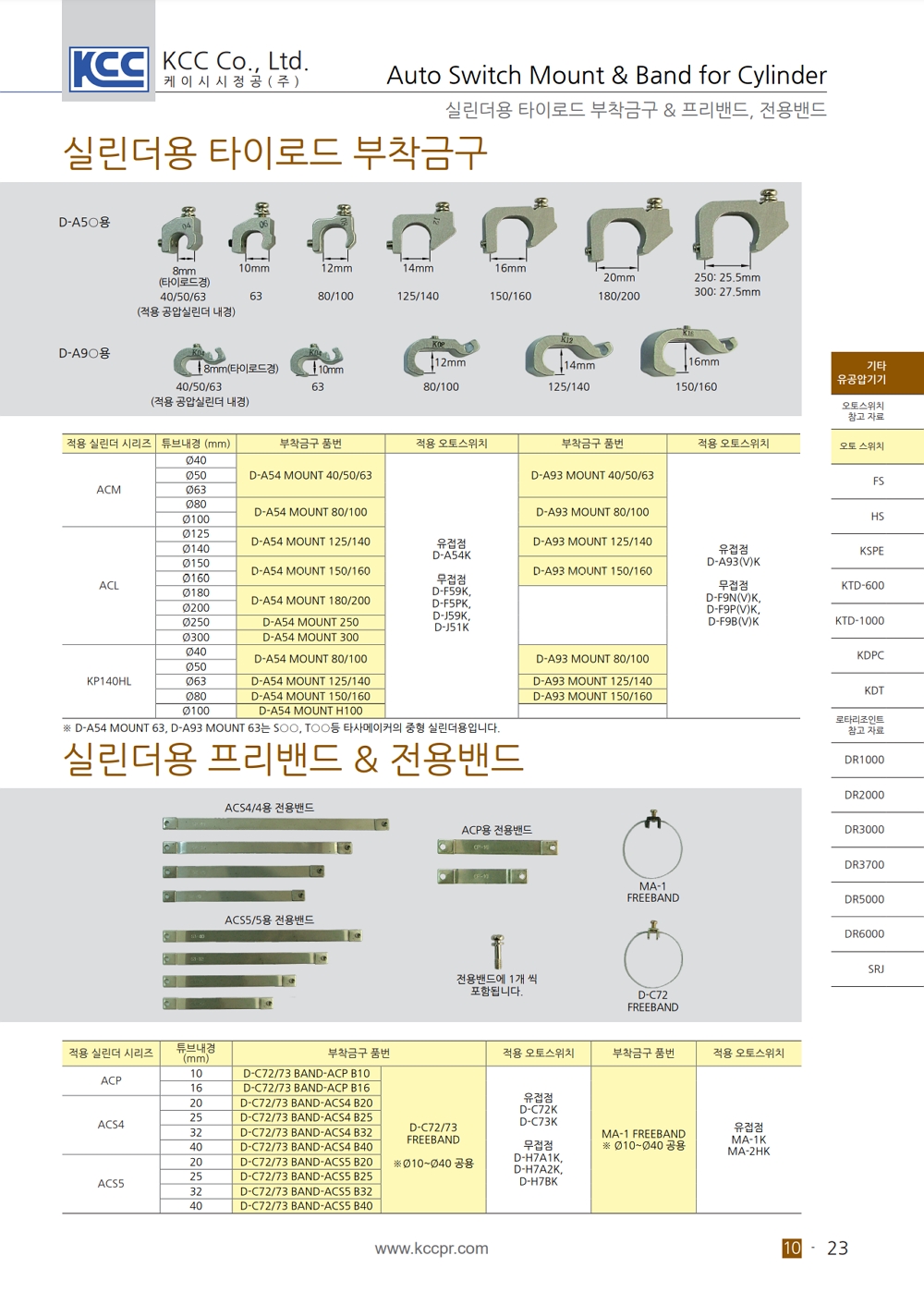 마운트 및 밴드 (오토스위치 부착용) KCC 실린더 악세서리