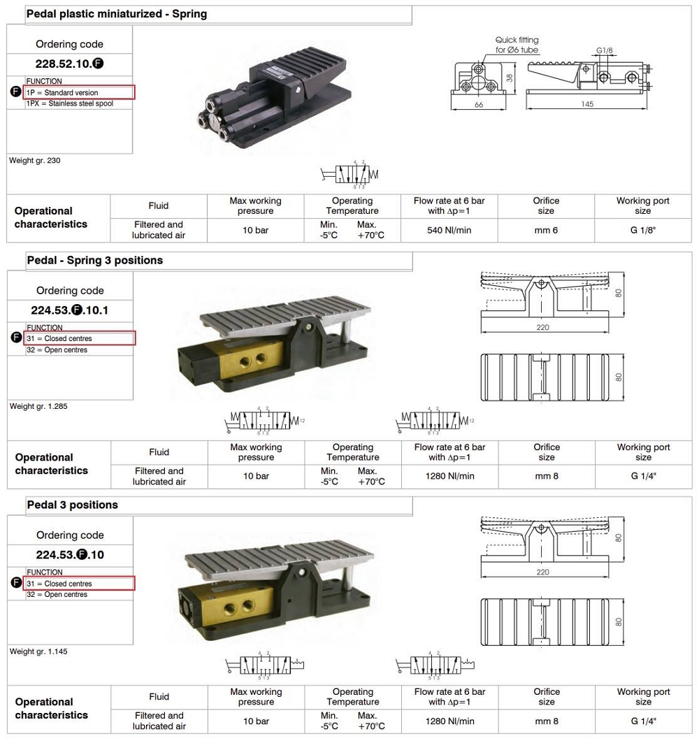 PNEUMAX 시리즈 5 포트 풋밸브 (ITALY)