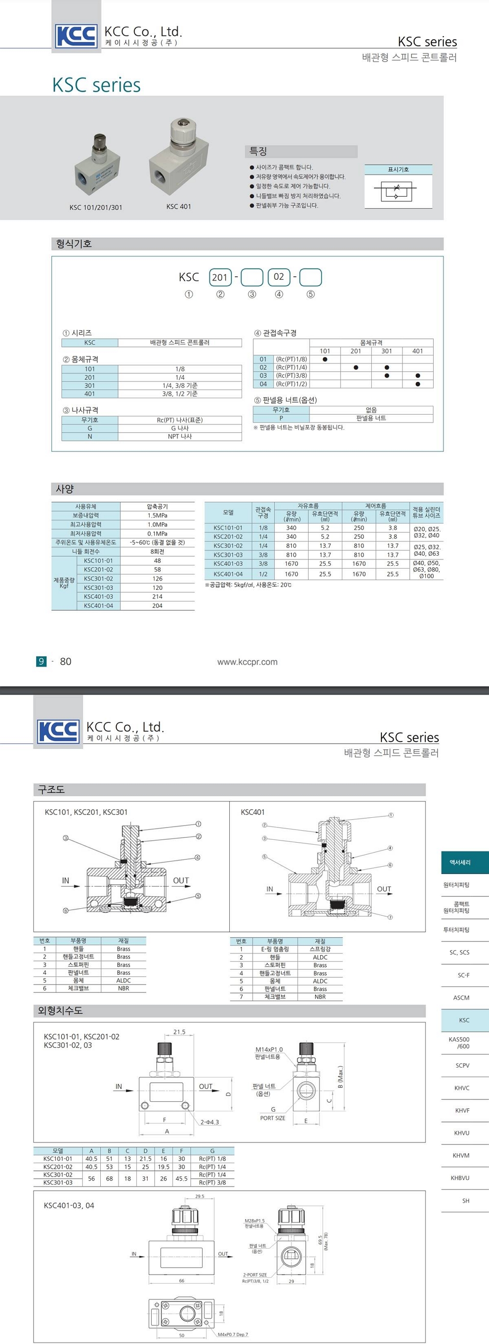 KSC 시리즈 배관형 스피드 콘트롤러 / 나사Rc(PT) 판넬용 너트 옵션