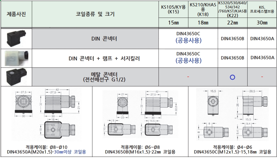 솔레노이드 밸브 딘코일용 커넥터 단품 구매 상품으로 딘코일 별매 입니다.