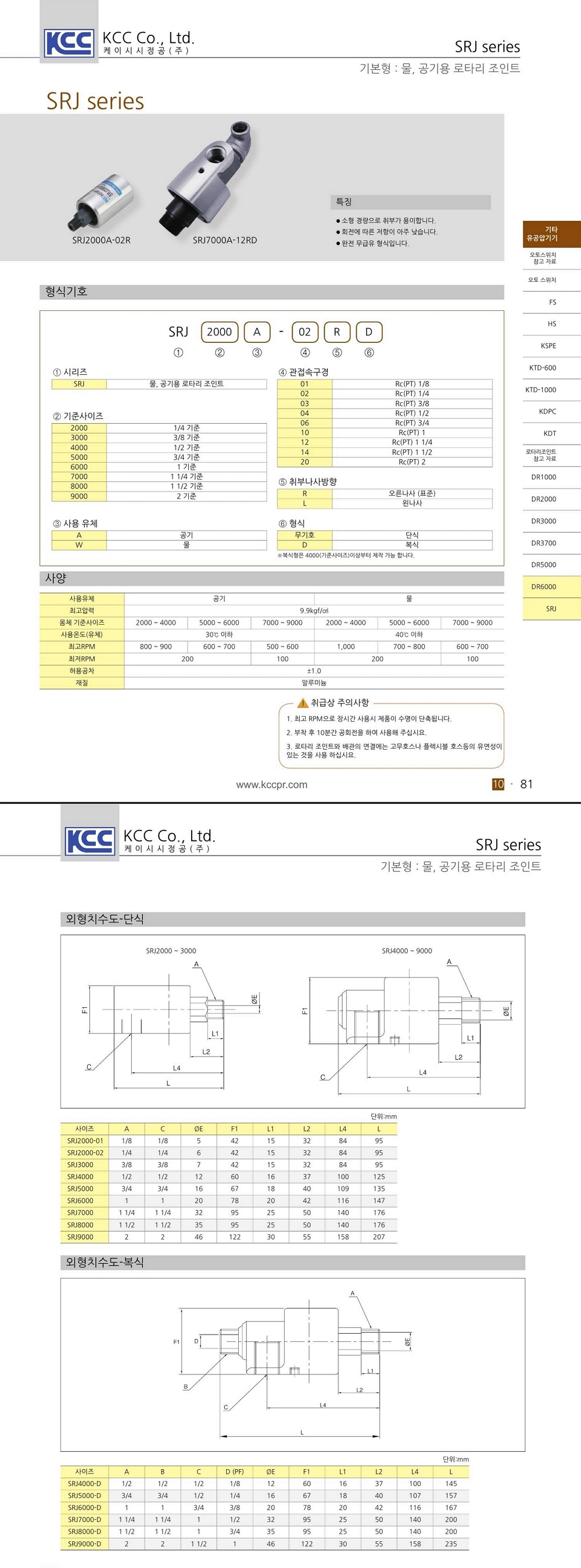 SRJ 1000 시리즈 1/8(6A)~2(50A) 단식 복식 / 물 공기용