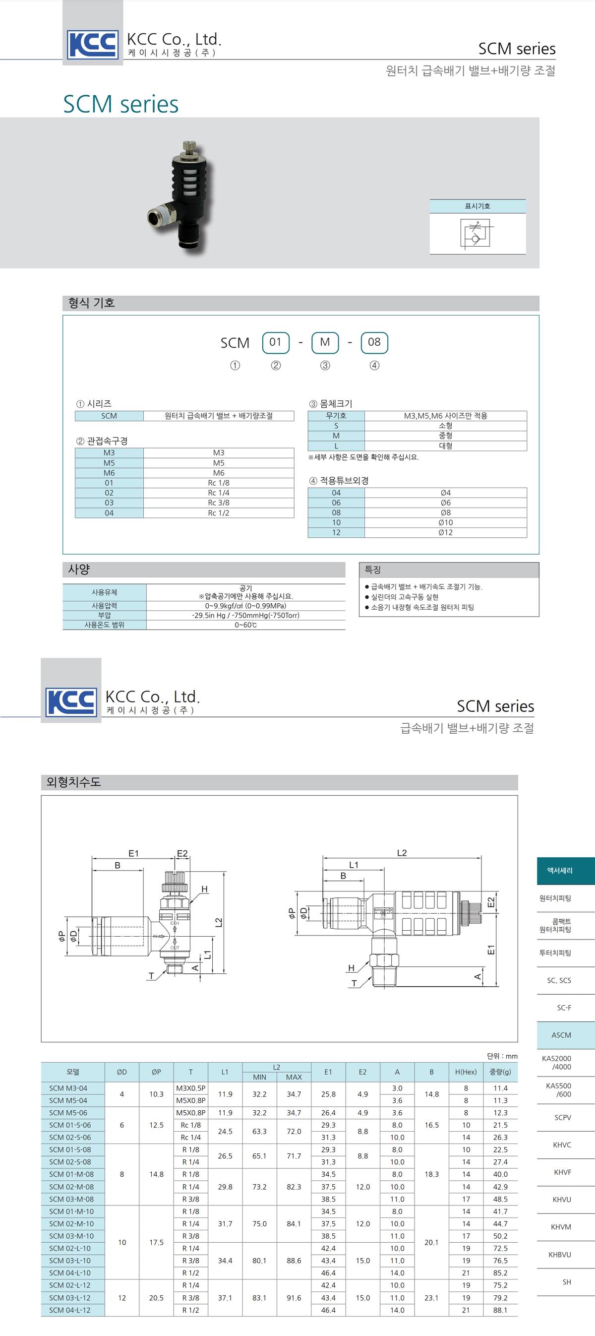 SCM 시리즈 원터치 배기량조절 급속배기밸브 / 나사R(PT) - 튜브(metric)