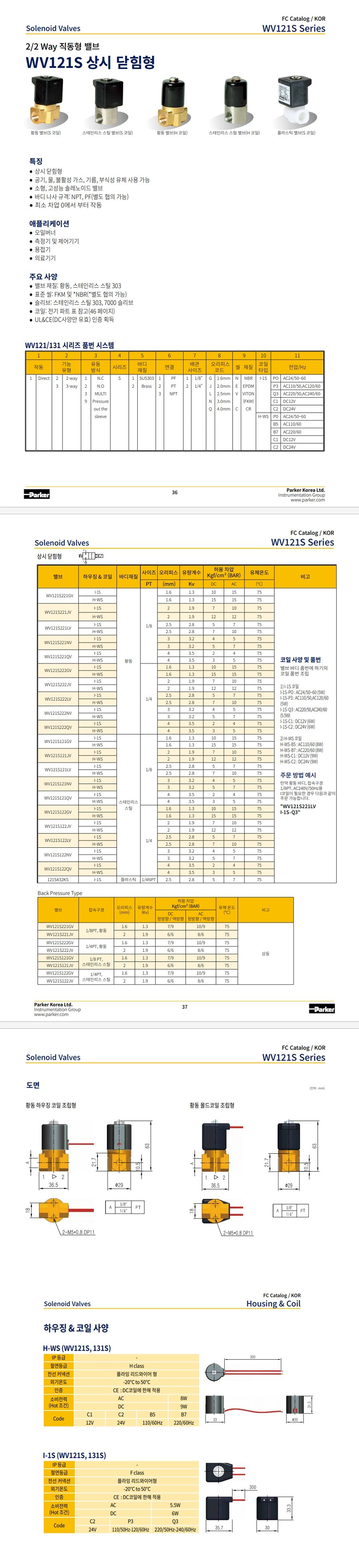 WV121S 시리즈 소형 직동식 PT 1/8(6A), 1/4(8A) max 15 bar