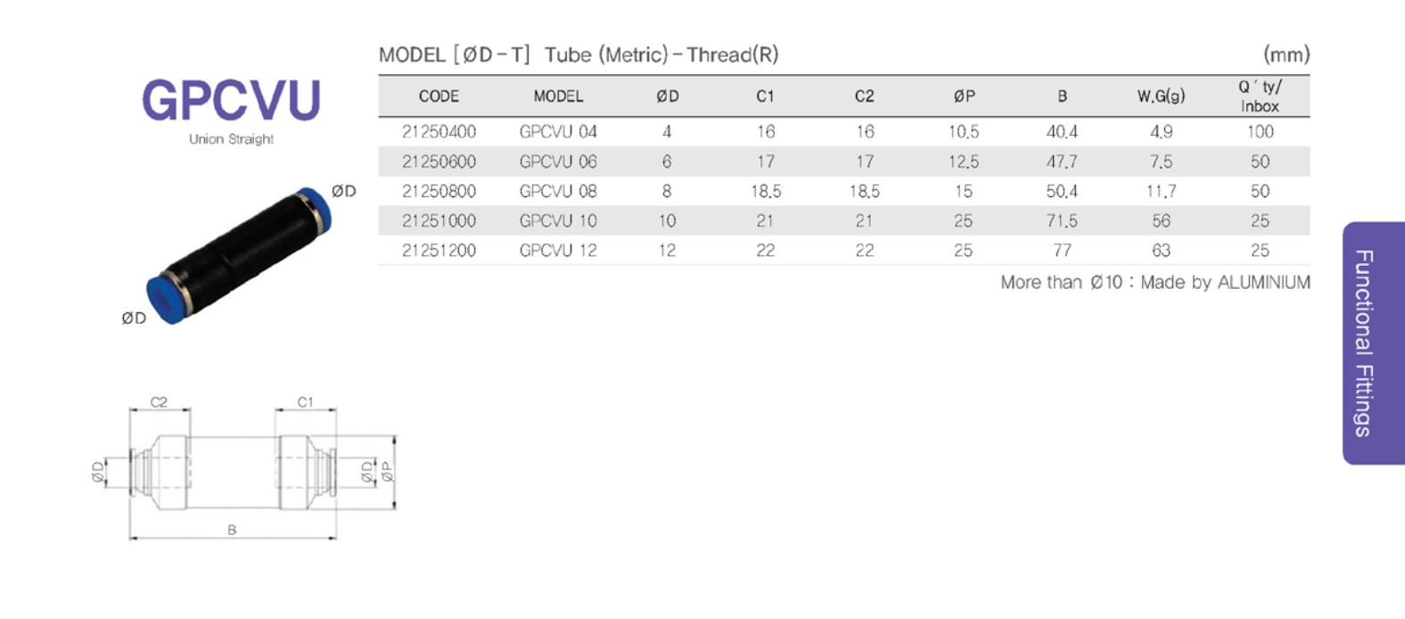 | 체크포인트 | - 사용유체 : 공기 - 사용압력 : 0~20kgf/cm² - 부압 : -750mmHg(10Torr) - 사용온도 : 0~80°C - 사용튜브 재질 : Polyurethane and Nylon |