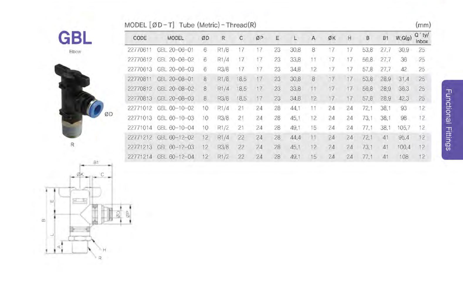 GBL / 튜브(metric)-나사(R, PT)