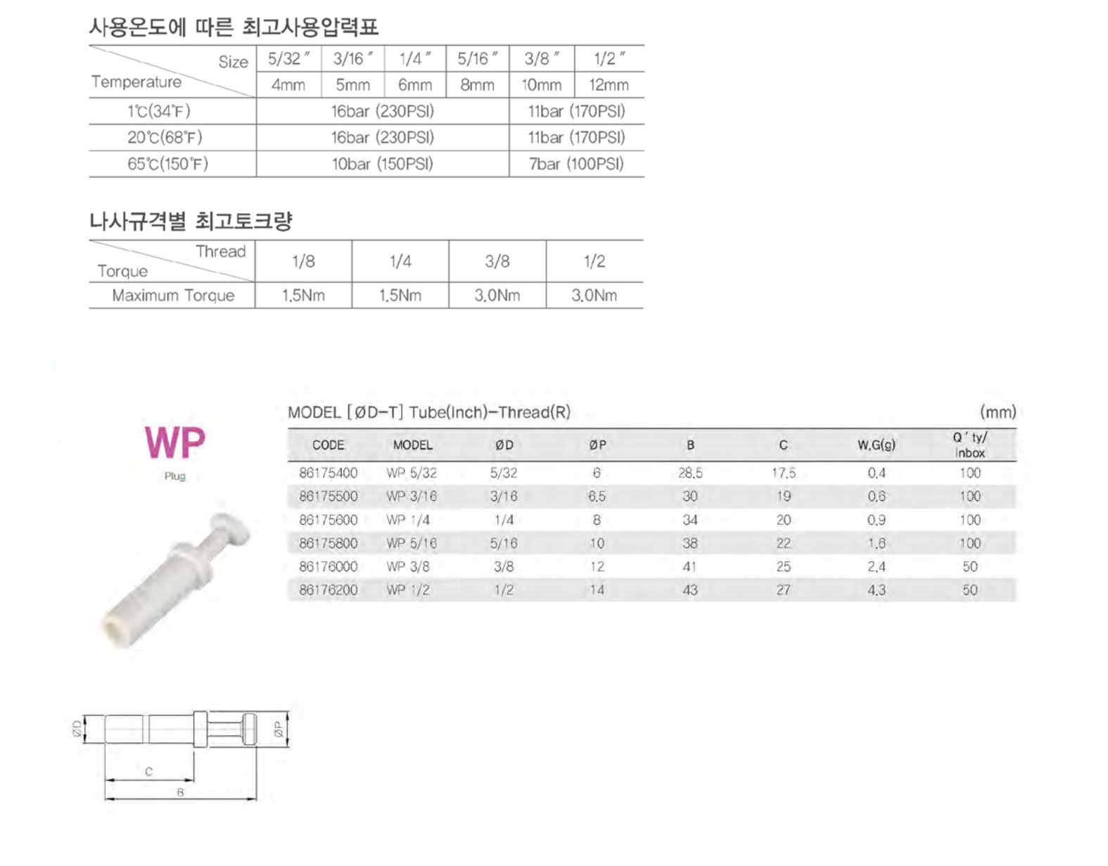 WP / 플러그(inch)