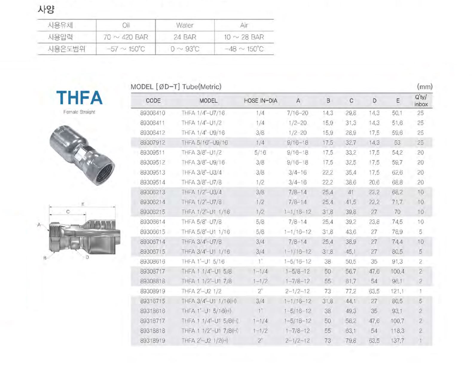 THFA / 호스 내경(inch)-나사(UNF)