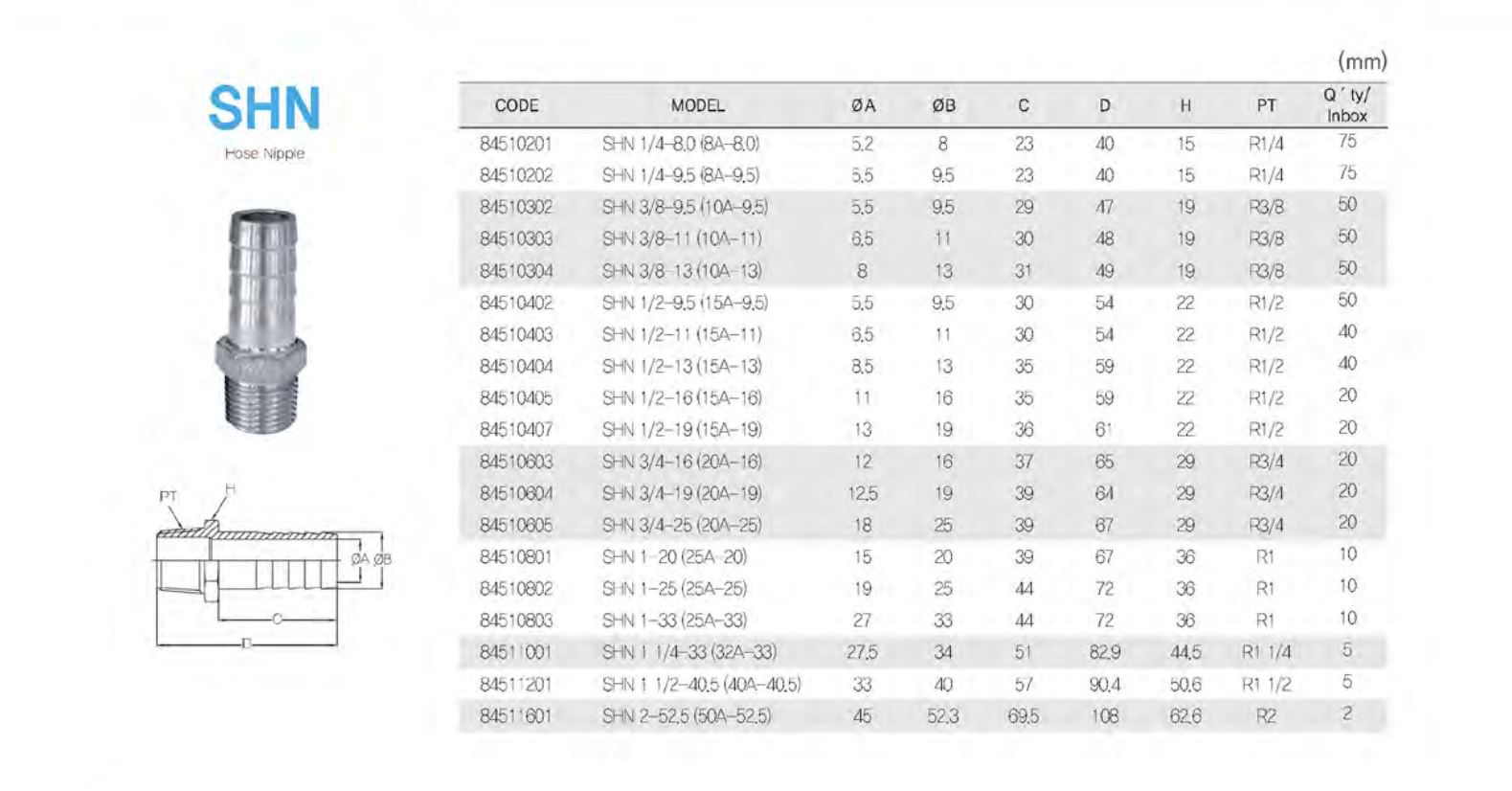 SHN / 호스 내경(mm)-나사(PT)