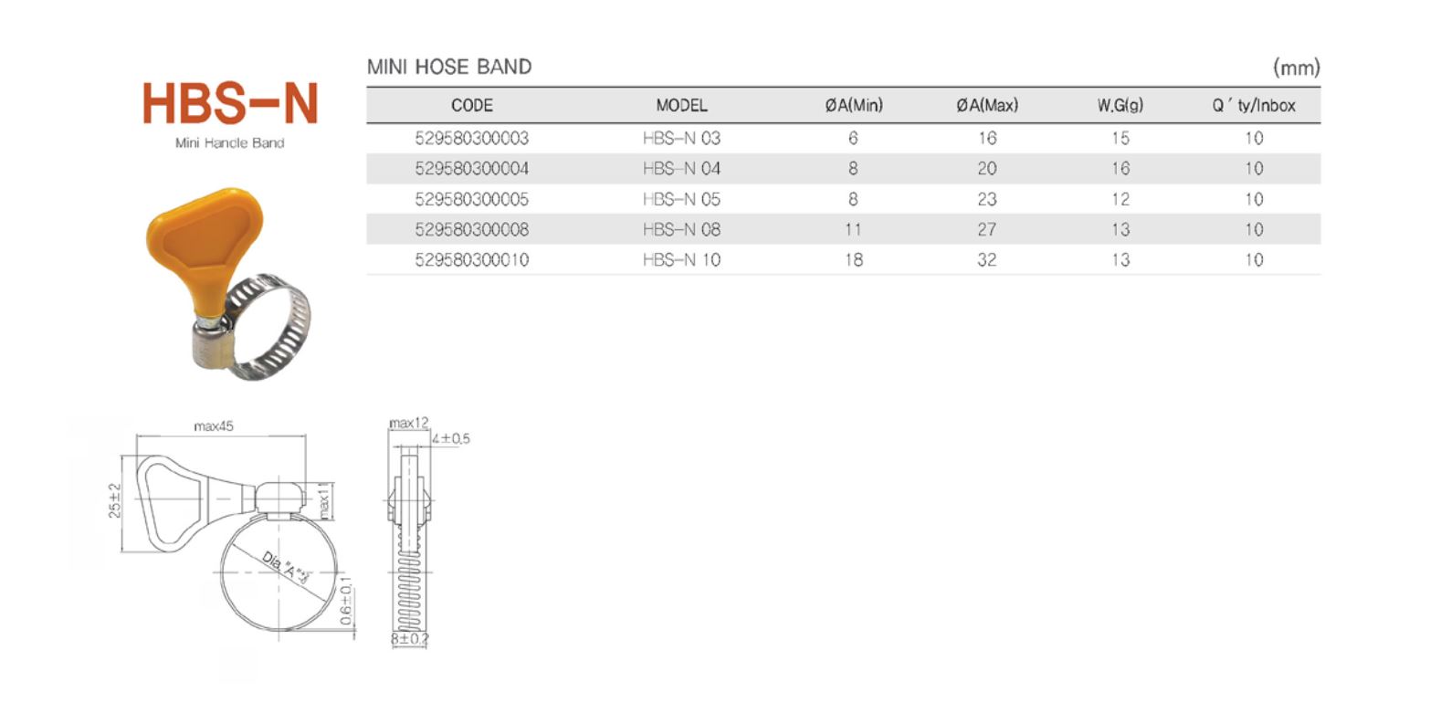 ● 호스 밴드 (Hose Band) 호스 이음 및 누수 방지에 사용합니다. 각종 호스관련 설비에 사용할 수 있습니다. 내식성, 내열성이 강한 Stainless Steel(SUS304)로 제조되어 내구성이 강하며 표면이 영구적으로 깨끗합니다. 밴드 전체가 이중 연마처리되어 호스를 파손시키지 않아 호스의 수명이 깁니다. Stainless Steel로 제조되어 여러 번 사용하여도 마모성이 없습니다. 인장강도가 높아 고열, 고압에서도 누수가 없어 매우 안전합니다. 정밀가공과 최고의 원재료 사용으로 뛰어난 토크량을 가지고 있습니다. 정밀기계로 생산되어 정밀성과 안전성이 뛰어납니다. |