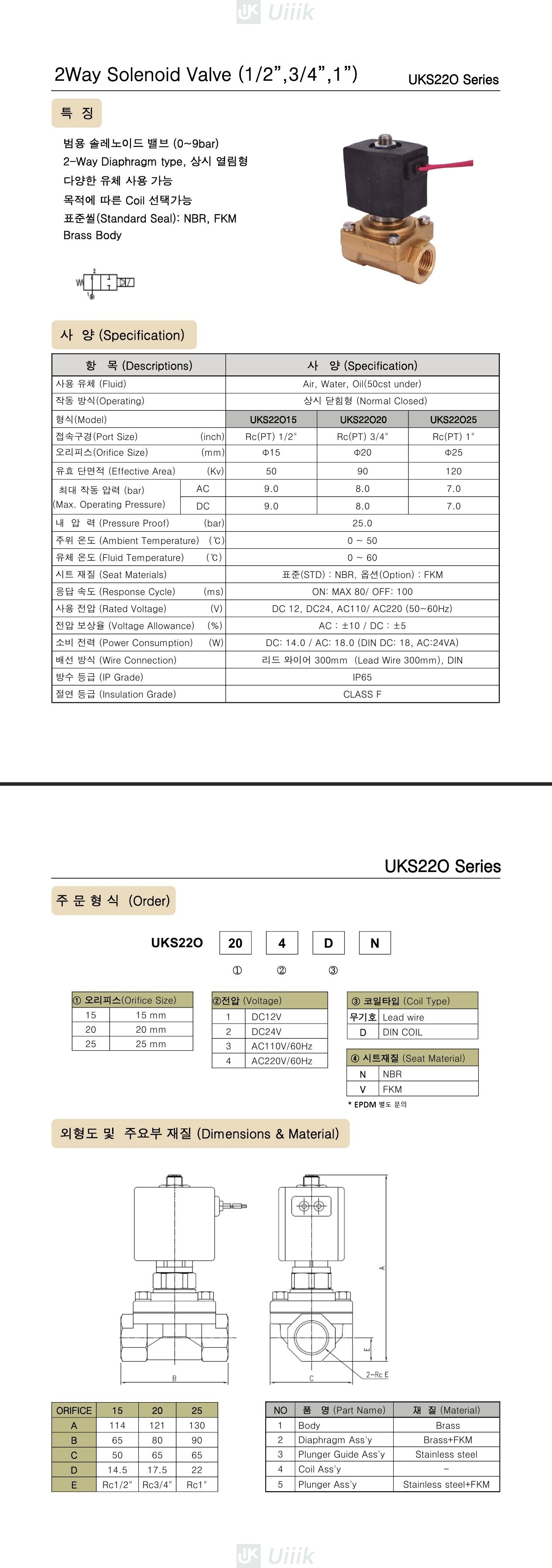 물 공기 기름 황동 NBR 1 (25A) 25 DC24V 7 리드와이어 3일 UKS22O010