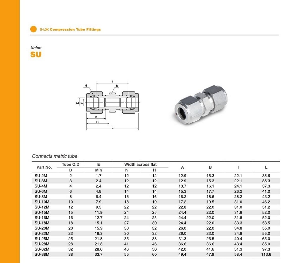 SU 시리즈 유니온 / mm 튜브용