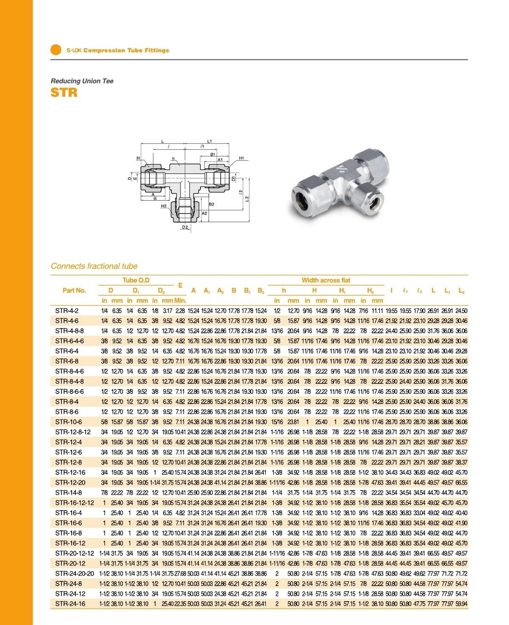 STR 시리즈 레듀싱 유니온 티 / Tube 외경(D) x 외경(D1) x 외경(D2) inch 타입