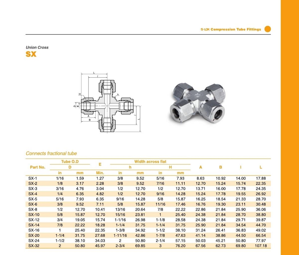 SX 시리즈 유니온 크로스 / Inch 튜브용