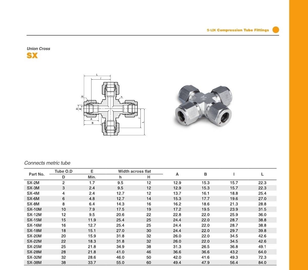 SX 시리즈 유니온 크로스 / mm 튜브용