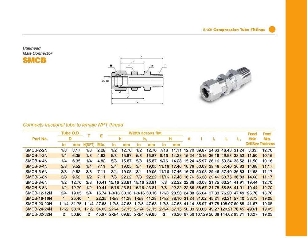SMCB 시리즈 벌크헤드 메일커넥터 / inch 튜브 - 수나사 NPT (inch)