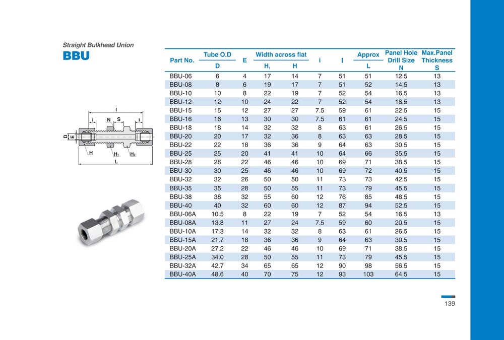 BBU 시리즈 벌크헤드 유니온