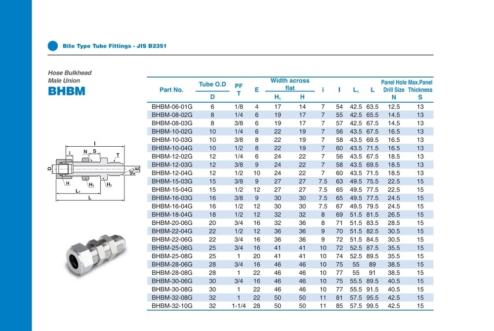 BHBM 시리즈 호스 벌크헤드 메일 유니온 Bulkhead / 평행나사 G(PF)