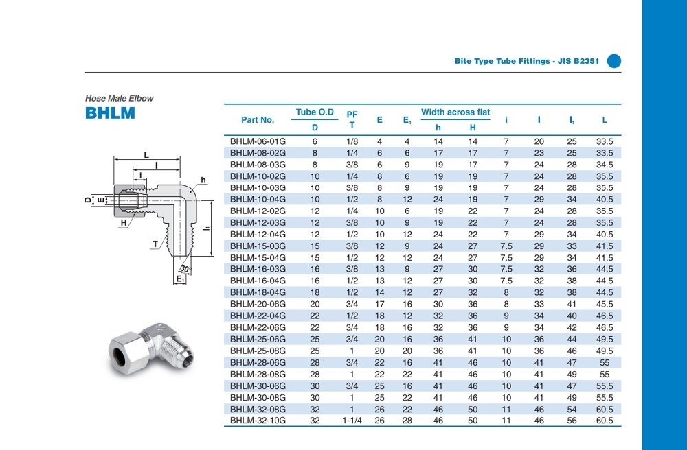 BHLM 시리즈 호스 메일 엘보 Hose male elbow / 평행나사 G (PF)
