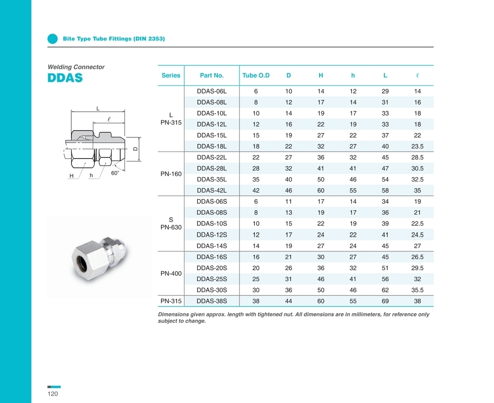 DIN2353 standard Two cutting edge single ring design Stainless steel 316 Metric tube O.D Lloyds / DNV / ABS approved |