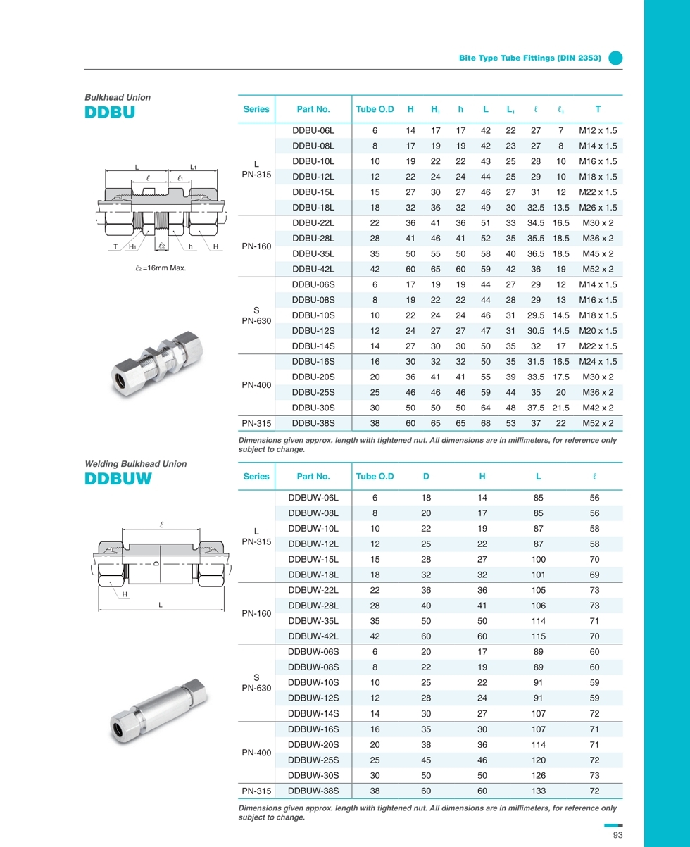 DDBU 시리즈 벌크헤드 유니온