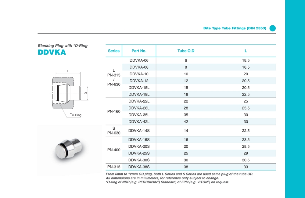 DDVKA 시리즈 블랭킹 플러그 오링 포함