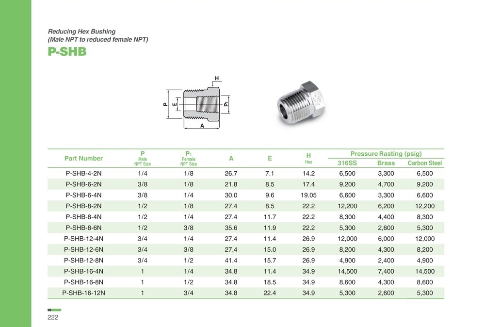 P-SHB 시리즈 레듀싱 육각 부싱 Reducing Hex Bushing / NPT Thread