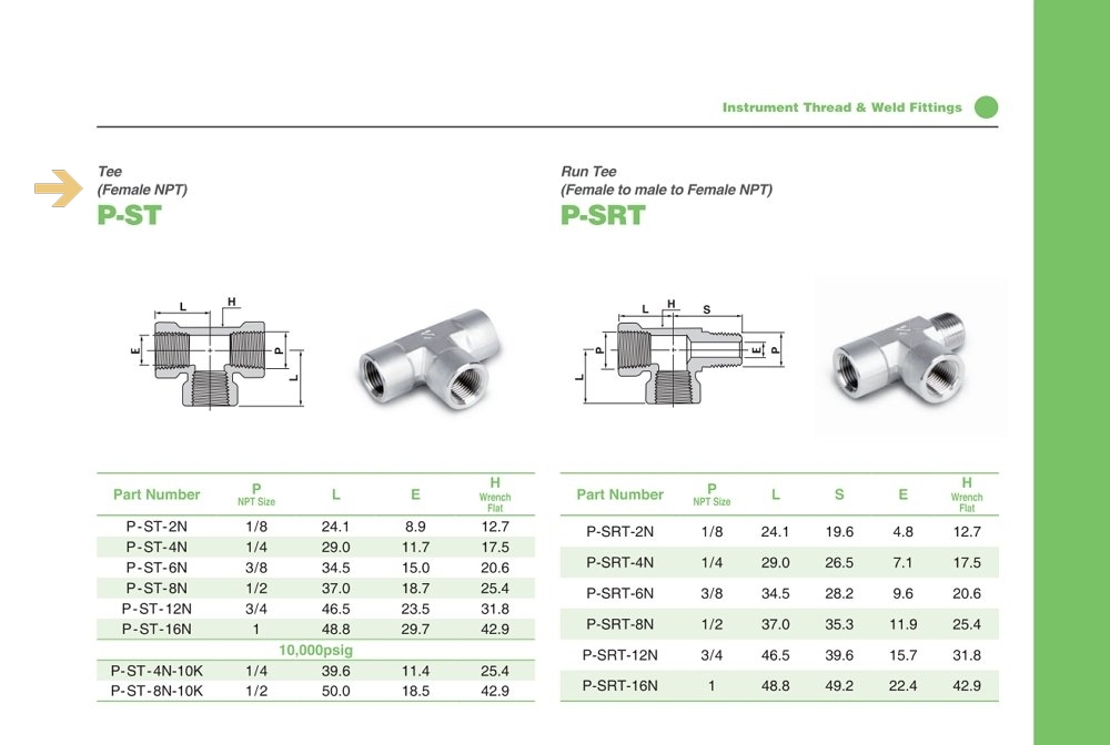 P-ST 시리즈 암나사 티 Female Tee / NPT or Rc(PT) Thread