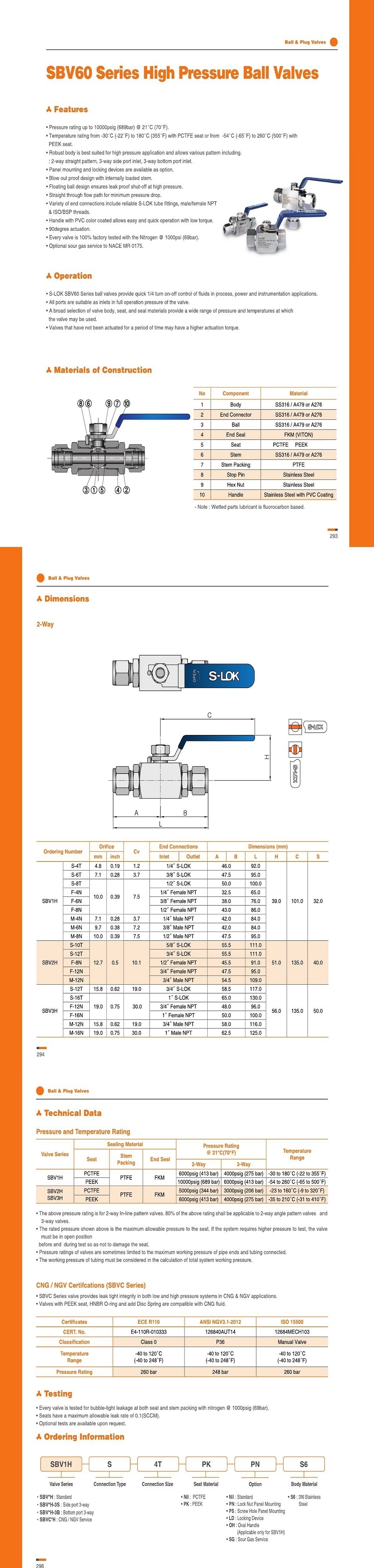SBV60 시리즈 / 2way 볼밸브 고압 6000 psi (SS316 재질)