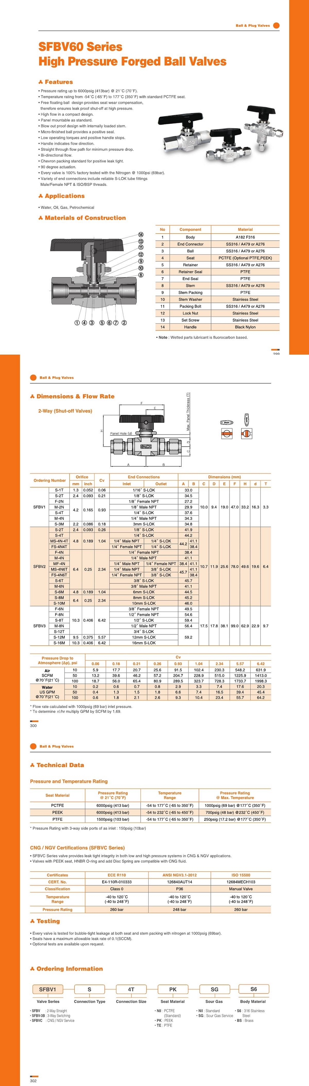 SFBV 시리즈 / 2way 고압 단조 볼밸브 6000 psi (SS316 재질)
