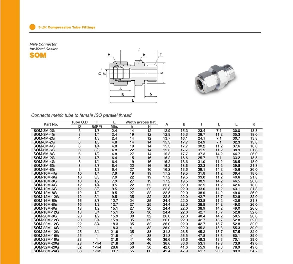 SOM 시리즈 메일커넥터 메탈가스켓용 / mm 튜브 - 수나사 G (inch)