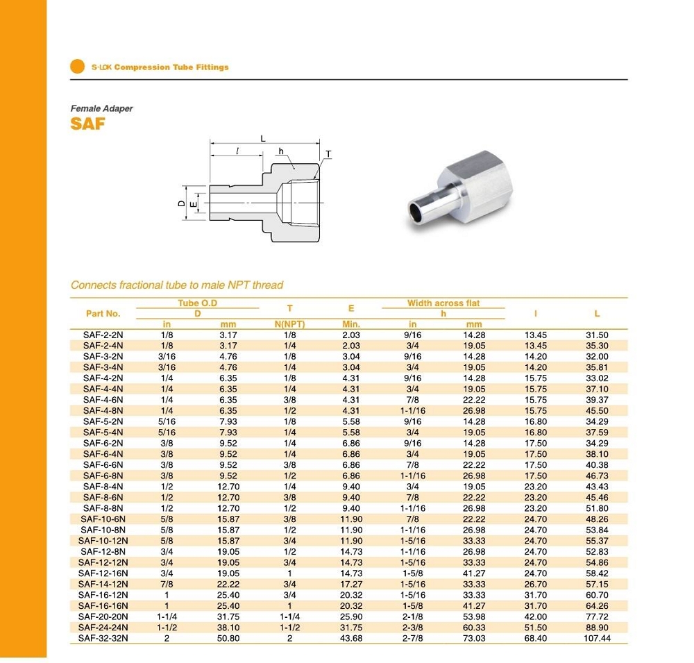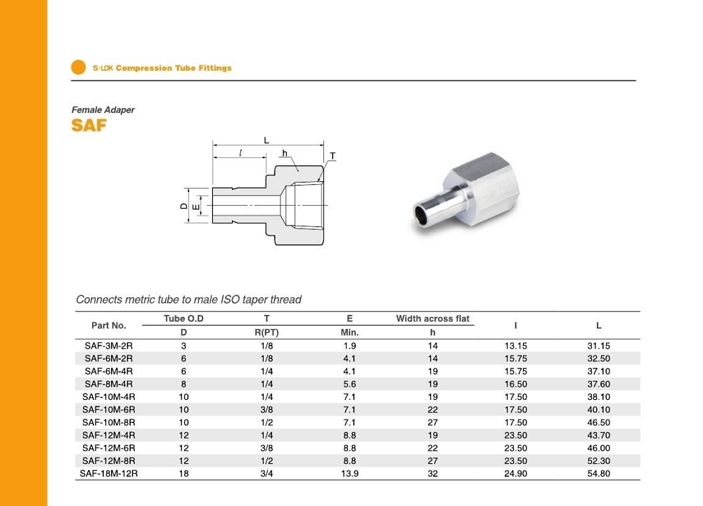 양단타입 : 튜브 아답타 - 암나사 Rc(PT) Pipe Thread 재질 : 316 Stainless Steel (S6) |