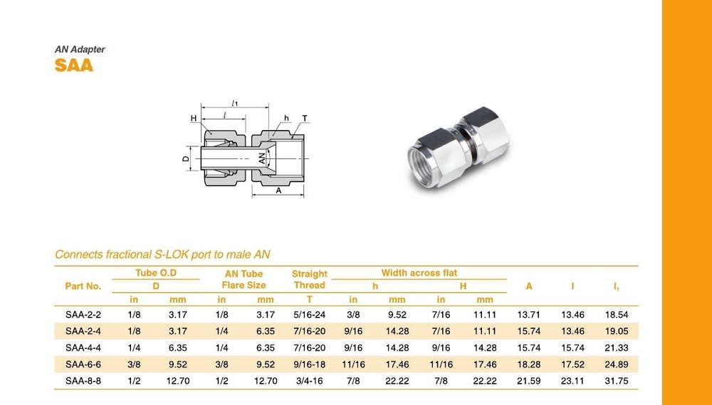 SAA 시리즈 AN 아답타 / inch 튜브 - 암나사 37° Flare