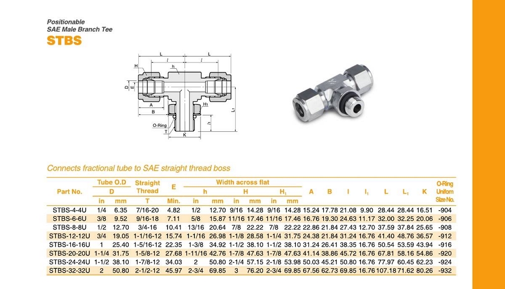 STBS 시리즈 포지셔너블 SAE 메일 브랜치티 / inch 튜브 - 수나사 SEA 타입