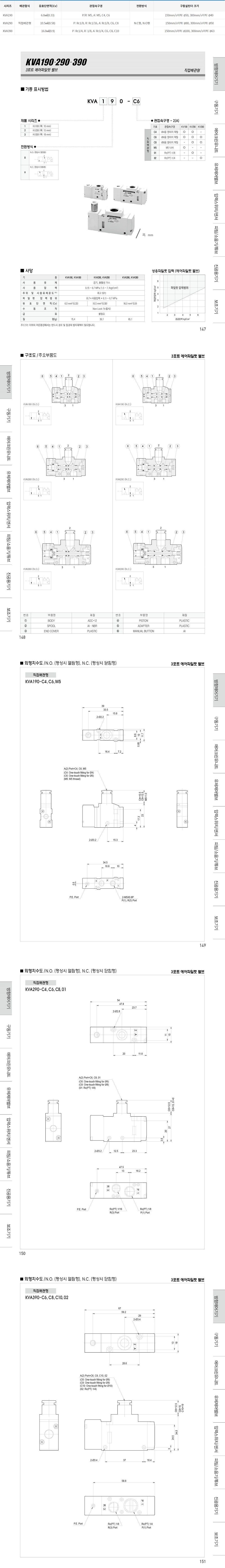 KVA190 KVA290 KVA390 시리즈 3포트 에어파일럿 밸브 / 상시닫힘 상시열림