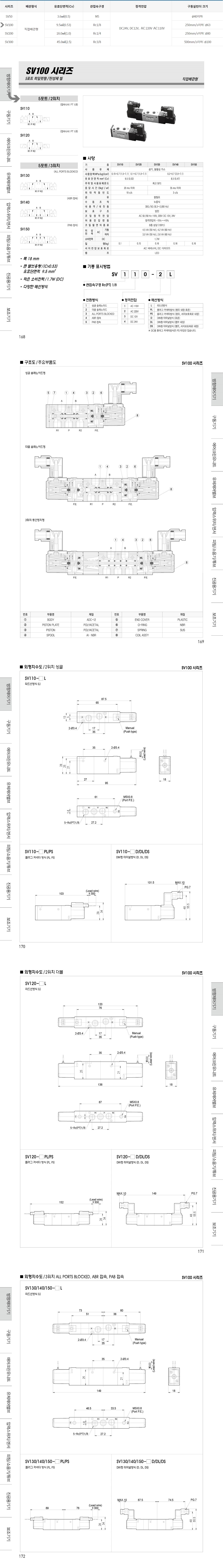SV100 시리즈 5포트 2위치 파일럿형 / 탄성체 씰 (싱글 더블)