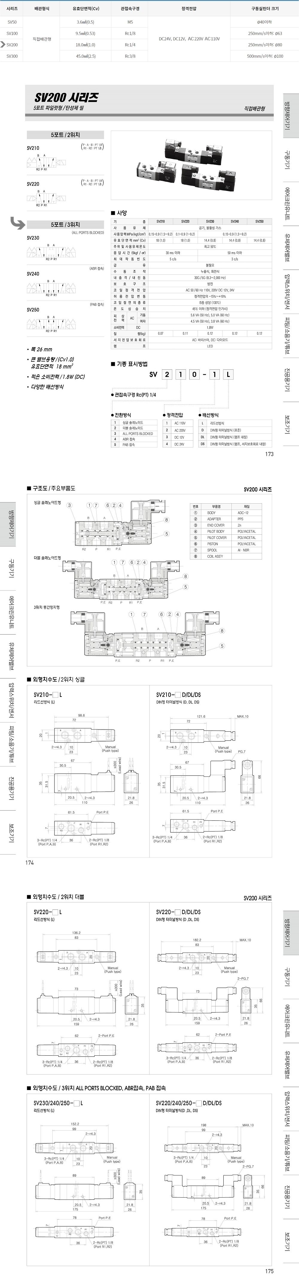 SV200 시리즈 5포트 3위치 파일럿형 / 탄성체 씰 (올블럭 ABR PAB)