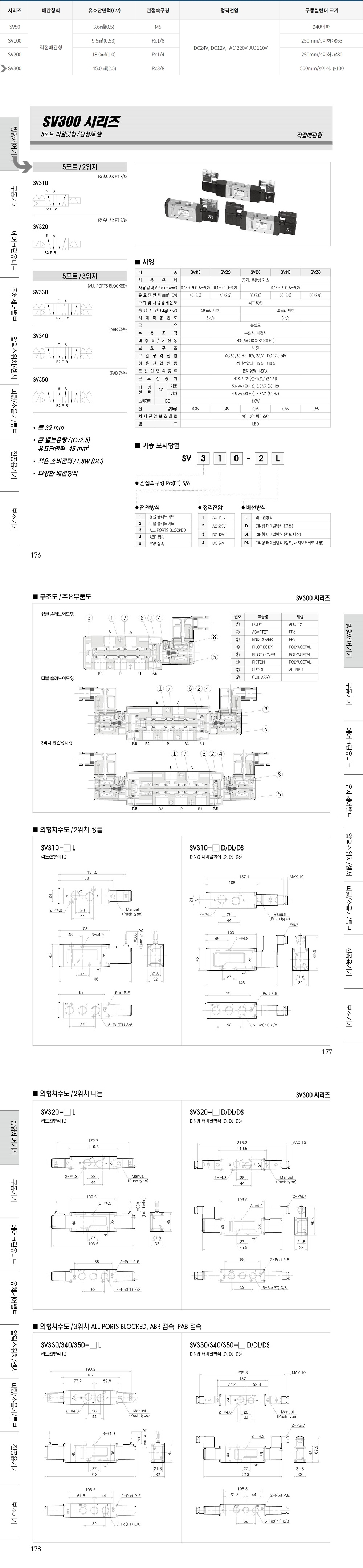 SV300 시리즈 5포트 2위치 파일럿형 / 탄성체 씰 (싱글 더블)