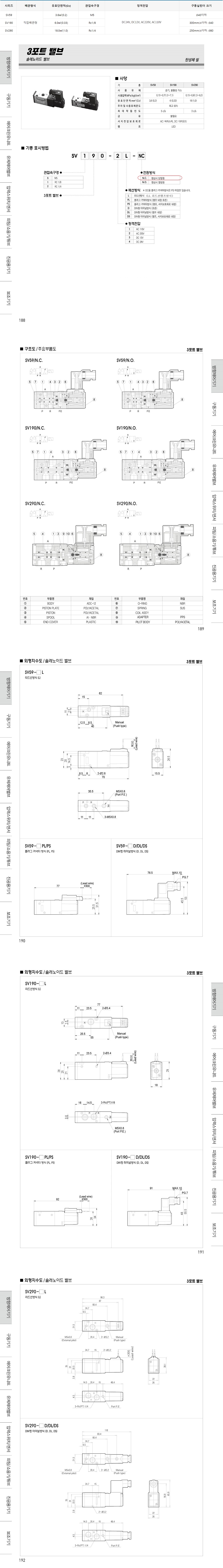 SV59 SV190 SV290 시리즈 상시닫힘 3포트 솔레노이드 밸브 / 파일럿형 N.C