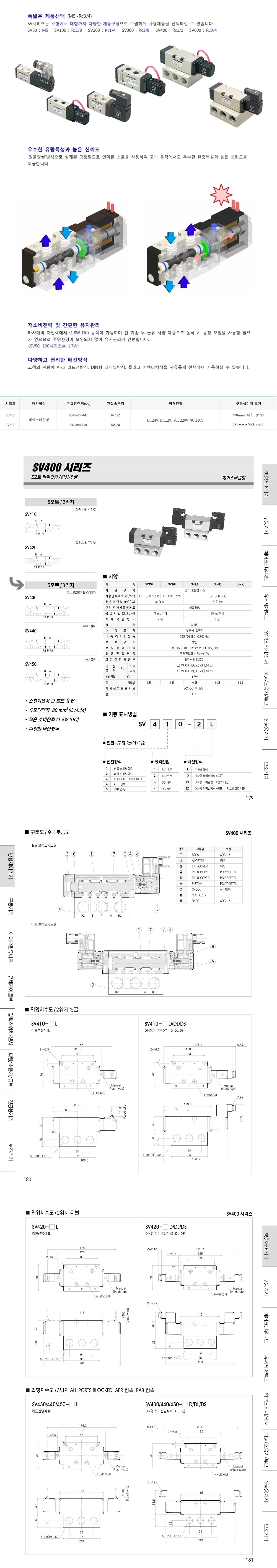 SV400 시리즈 5포트 3위치 파일럿형 / 탄성체 씰 (올블럭 ABR PAB)