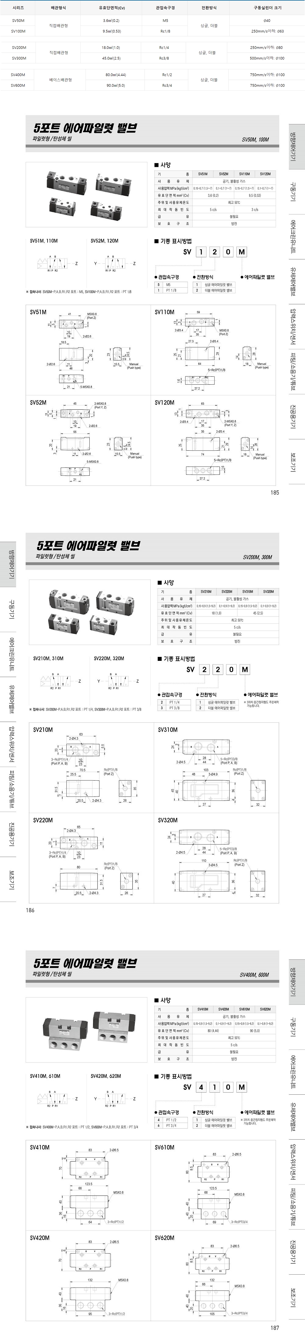 에어파일럿 밸브 5포트 2위치 / 탄성체 씰 (싱글 더블)