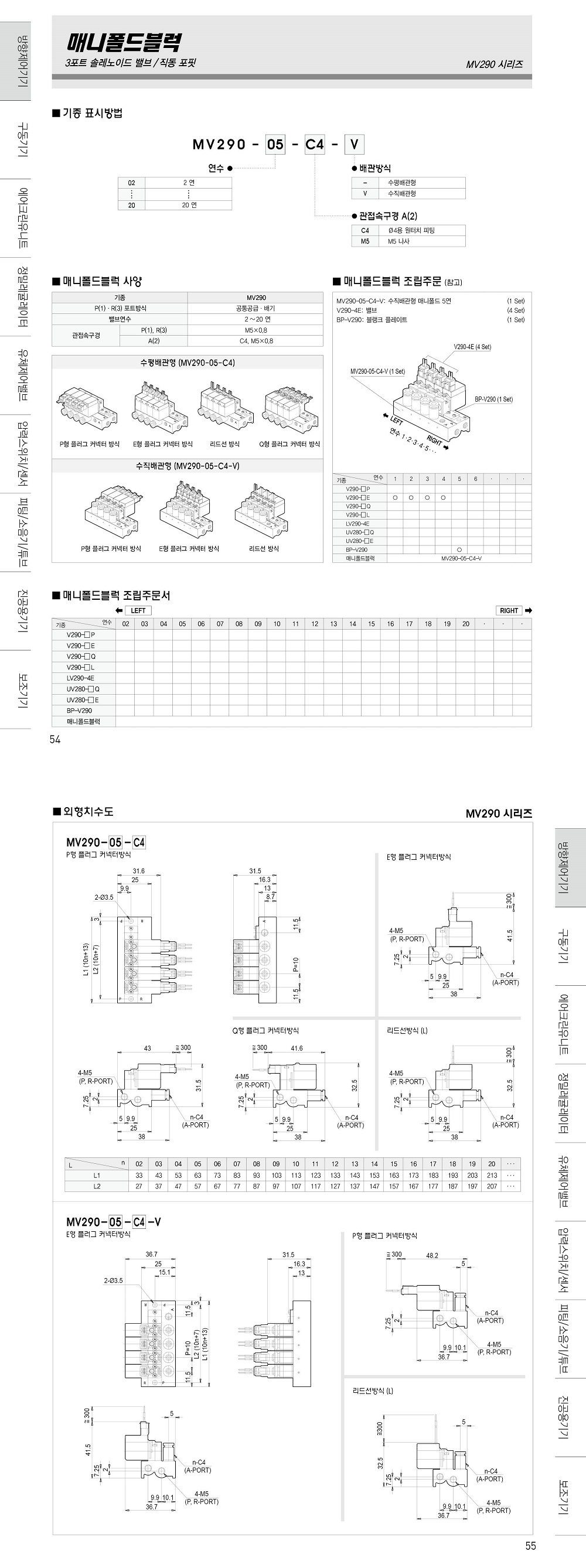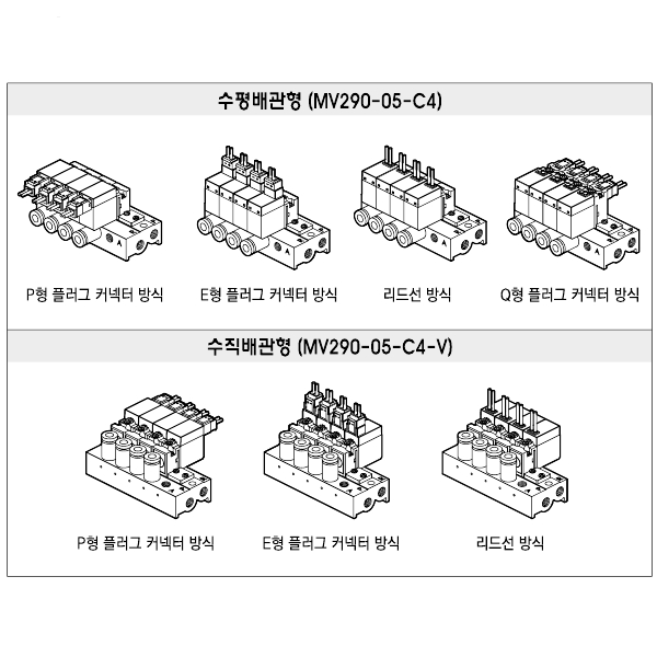 | 체크포인트 | 매니폴드 블록만 출고되는 상품입니다. (3포트 솔레노이드 밸브 V290 *별매) 표준 상품 외 별도 문의 부탁 드립니다. - 10연조 이상 매니폴드 블록 (최대 20연조) - 6파이 원터치 피팅 부착 (C6) |