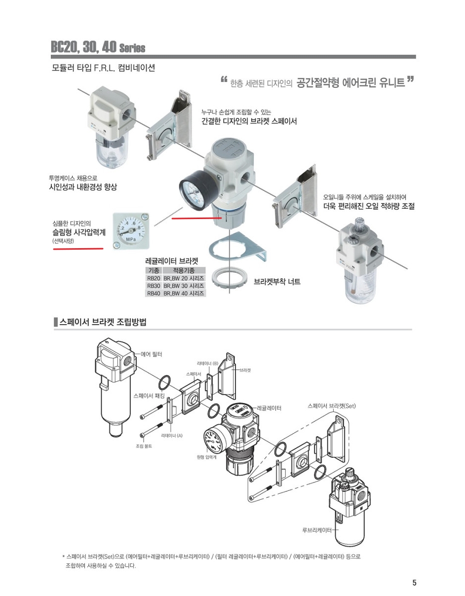 레귤레이터용 게이지 R(PT) 1/8 라운드, 슬림사각