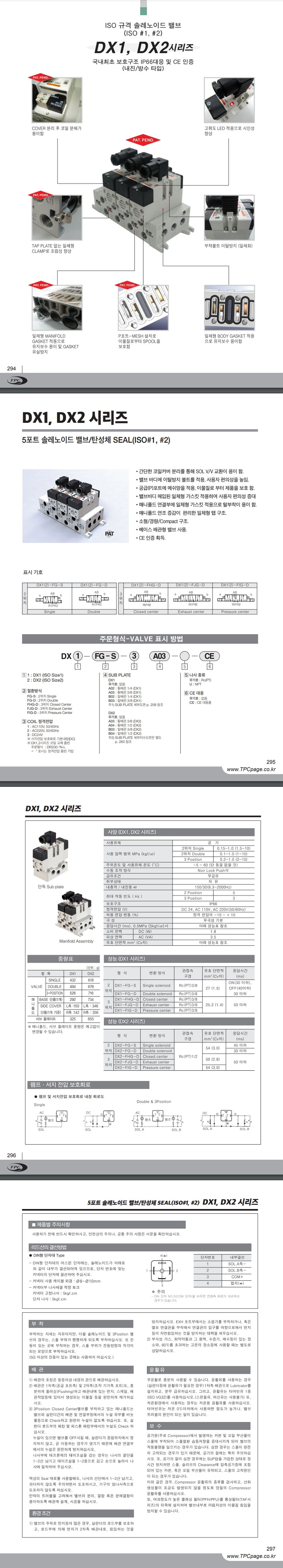 DX1 DX2 ISO 5포트 파일럿 방식 싱글 더블 탄성체 Seal 1/4(8A) 3/8(10A) 1/2(15A)