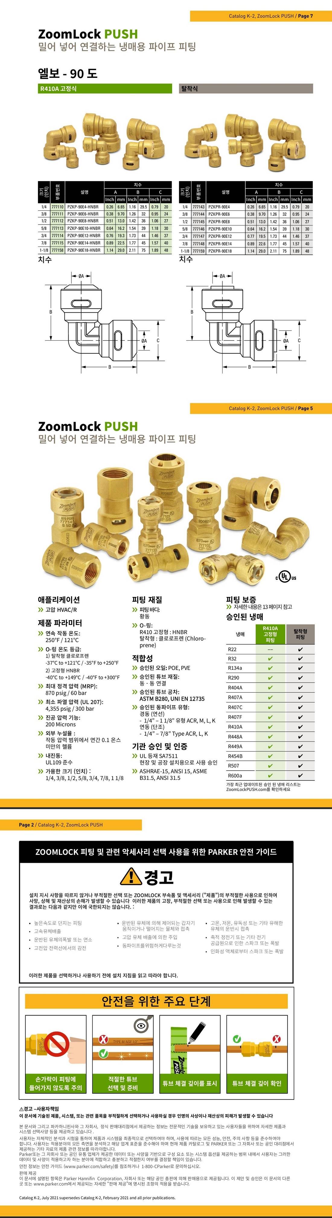 | 체크포인트 | 탈착 불가능 고정형 피팅입니다. 줌락 피팅 사이즈는 ACR용 (HVAC/R 고압용) 동관 사이즈 기준으로 참고 선정 바랍니다. |